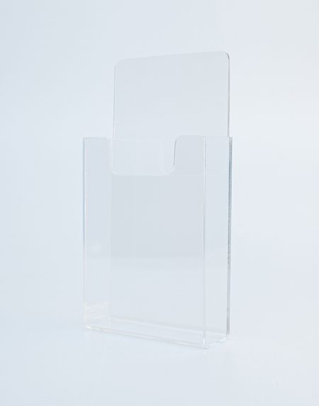 Enhance your promotional materials with our A5 Vertical Brochure Holder. Clear and sleek, it elegantly displays brochures, making them easily accessible while adding a touch of professionalism to your space.
