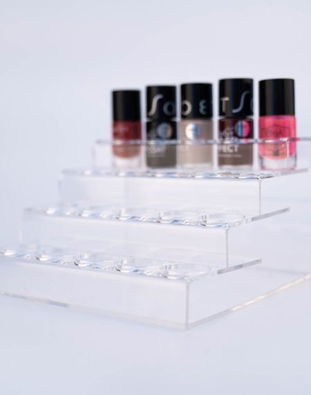 Upgrade your vanity with our 3-Tier Bronze Cosmetic Organizer. Elegant and practical, it provides ample storage for makeup, skincare, and accessories, keeping your essentials organized and easily accessible. Beauty redefined.ription for an “modern display stand”